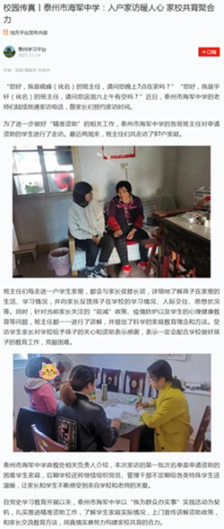 《学习强国》校园传真丨泰州市海军中学:入户家访暖人心 家校共育聚合力