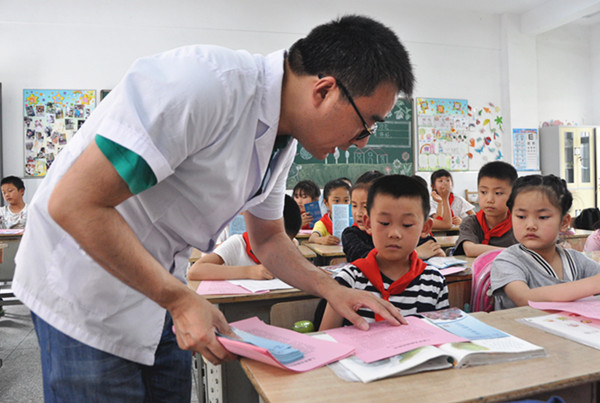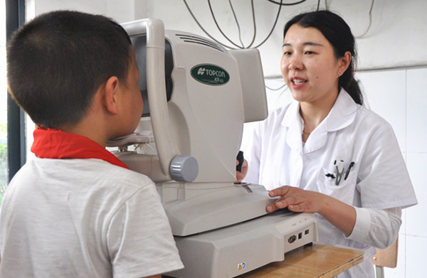 医生进校园检查学生视力 学校纠正学生不良用眼习惯