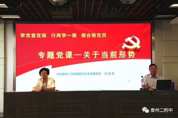 9月13日下午,泰州二附中党总支开设专题党课——关于当前形势,学校民主党派人士受邀列席。