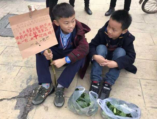 五(5)班的陆远和史焕晨家住校区附近,奶奶还有自留地,他们决定在路边摆摊卖青菜,这可是他俩第一次做生意。他们找来一块纸板,做成牌子,写上自己的身份信息、卖菜的目的等内容,再加上“自家青菜自家产,无农药污染,绿色食品,一元一包”的广告语,特别在纸牌中间位置画上红十字会的LOGO“+”。俩人席地而坐吆喝了半天也问人光顾。见天色已晚,他俩只好主动出击,看到一位老奶奶牵着孙子走过,主动迎上去:“奶奶,这是我家自产的青菜,无农药,绝对是绿色青菜,择得干干净净的,一元一包,您就带回家吧!卖菜的钱明天我要到学校捐给红十字会。”老奶奶看他俩诚实可爱,就把两包菜都买下了,他们是连声道谢。回去的路上,俩人不禁感慨:“卖个青菜都不能随随便便成功,真是‘事非亲历不知艰’啊!”