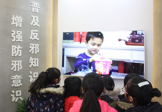 师生们在反邪教宣传教育基地工作人员引导下进入多功能展览室。他们通过观看邪教毒害广大人民群众的案(事)例、图片、实物、视频,通过及人、机互动等方式了解邪教的危害,认清邪教“反人类、反科学、反社会、反政府”的本质,从而提升防范邪教的意识。