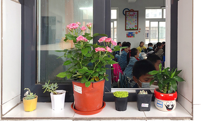 师生一起动手,从学校的花圃里移植花苗,进行培育。活动也受到了家长们的欢迎,家长把绿植送到学校装点教室,还支持孩子们用零花钱购买简易盆花摆放到窗台上。