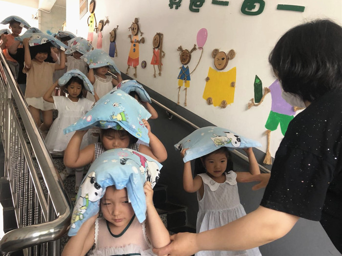 九龙镇中心幼儿园开展防震减灾疏散演练活动 来源:九龙幼儿园 作者:吴丽 发布时间:2020-06-14 浏览次数: 次 【字体:小 大】 6月11日下午,九龙镇中心幼儿园开展防震演练疏散活动。演练中,老师一边告知孩子们“地震来时,不要慌!”,一边指挥他们迅速抱头、闭眼,躲在课桌椅下,尽量蜷曲身体,降低身体重心,尽可能保护头部。“地震”短暂结束后,老师立即指挥幼儿,弯腰低身,沿预定的路线迅速有序地撤离到安全空旷地点。 分享到: 【打印正文】 相关内容