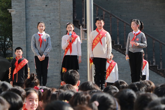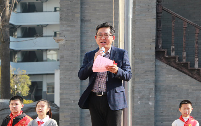 开学典礼上,大浦中心小学魏斌校长佩戴上充满寓意的小红花,为同学们送出新年的祝福,提出新的期望: