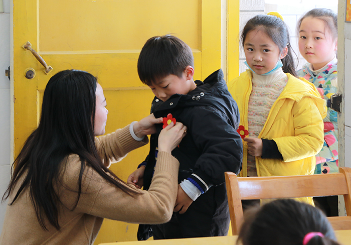 2月22日开学第一天,大浦中心小学的同学们尤其兴奋,因为他们每人都收到了来自班主任老师的新学期小奖励——一朵“小红花”。