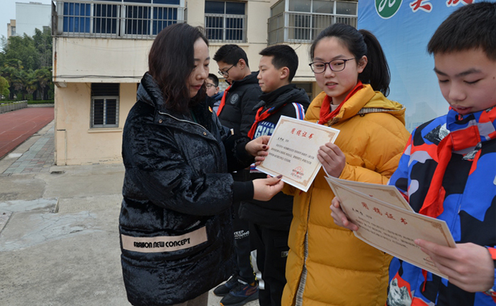 学校校长、校报主编王伟宣读了上学期学生优秀习作用稿名单。省作家协会会员、第27届“东丽杯”孙犁散文奖获者、本土作家陆泉根老师和校报总策划鲁茂冬老师为22名同学颁发录用证书和纪念品。