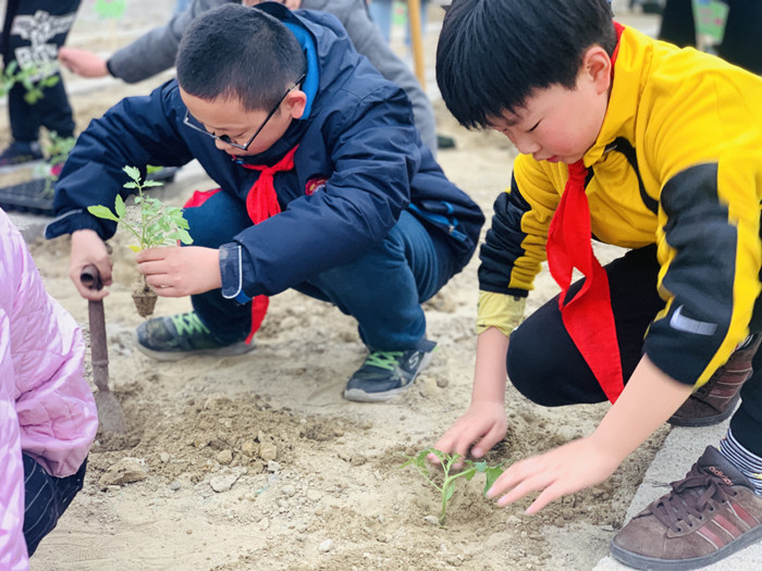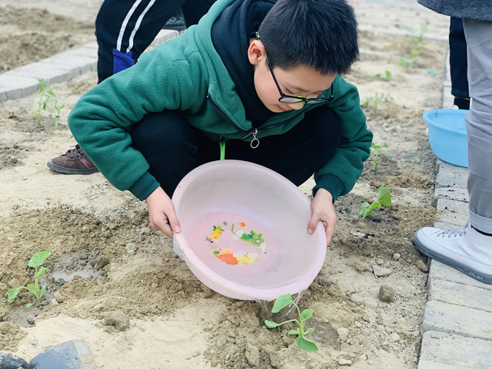 孩子们在老师们的带领下走出教室、拿起工具,来到“城东小农场”,在自己班级分配的责任田里播撒了希望的种子,体验种植劳动的快乐。在小小农夫们的共同努力下,不一会儿,一块块种植区焕发出了新的生机。