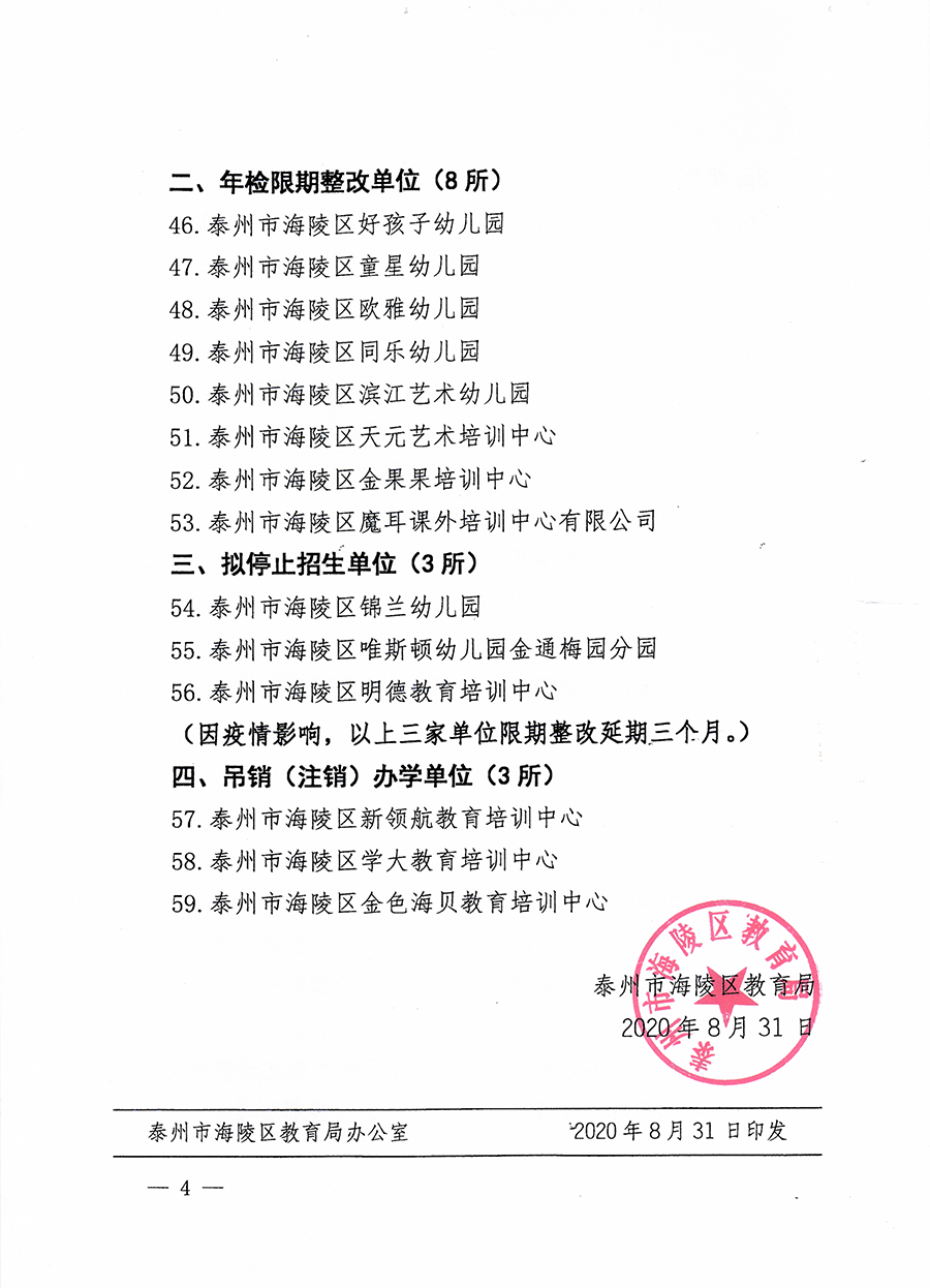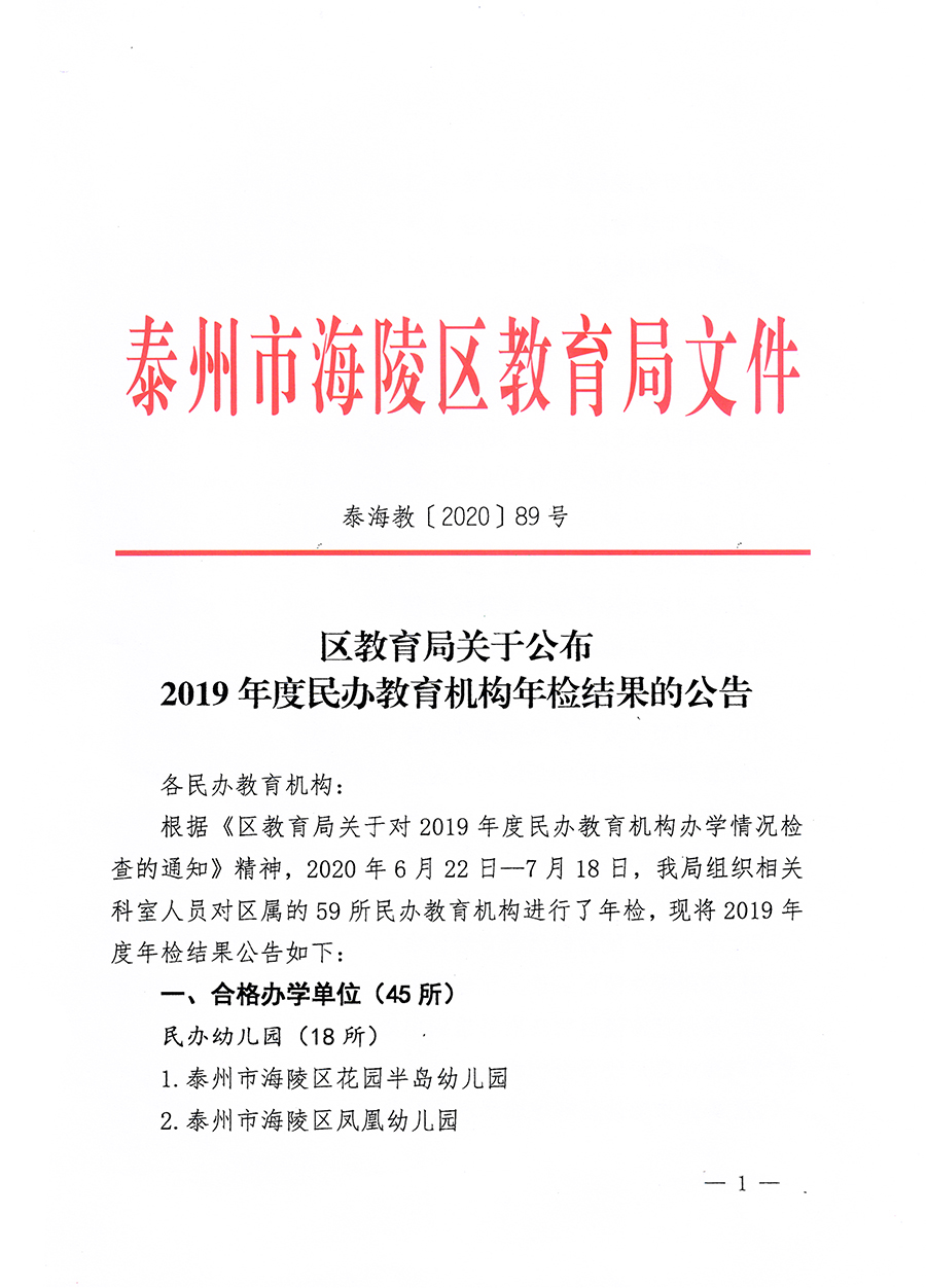 区教育局关于公布2019年度民办教育机构年检结果的公告