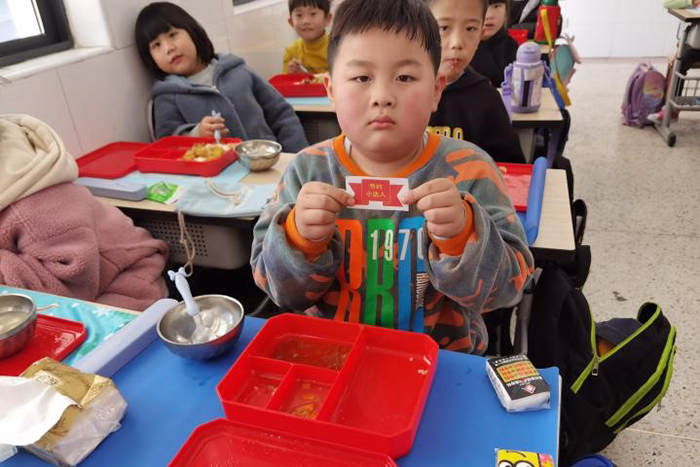 扬桥小学组织学生把节约粮食教育作为节约教育的重中之重,学校制订了防止餐桌浪费的具体办法,开展了争做“节约小达人”的教育活动,并真正地落到了实处。设立“节约监督员”岗位,每天到各班监督学生每天的午餐是否浪费,认真查看同学们的餐盘是否吃干净,发现有剩菜的学生,便耐心劝导珍惜粮食、文明就餐并提醒下次注意。制定“节约小达人”评比方法,通过晨会、主题队会、黑板报等宣传,大队部设计了“节约小达人”卡片,每天一种颜色,每天光盘即可领取一张,集齐五个颜色的卡片,可以获得“节约标兵”奖章。