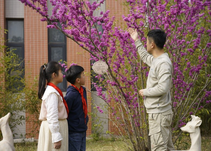 为更好地推进素质教育“5+2”工程,落实“把最美好的世界献给学生”的办学理念,拓展学生知识,丰富校园文化建设。泰州市大浦中心小学开展“我为植物发身份证”植物挂牌活动。前期科学组的老师们先对校园里的植物进行一个全面的摸查,通过查找资料,达到初步共识。然后联系相关园林专业人员,对植物进行匹配。在老师的带领下,组织学生认识校园植物。老师仔细地讲解着每一种植物的名字、特色,并利用社团课的时间,组织学生给植物挂牌。