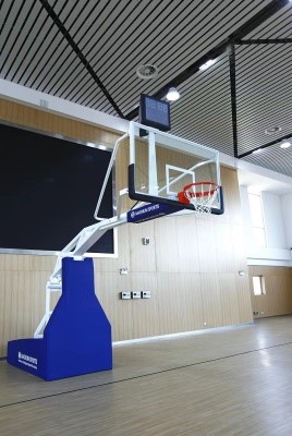 | 1 | 液压篮球架 | (一) 产品技术规格: 篮架伸臂为2.55米,篮圈上沿离地面高3.05米。 (二) 产品用材: 篮球架箱体尺寸为1.95m×1.1m,选用6mm钢板折弯后拼焊而成,部件内分布有多个加强板,有效的保证整体的稳定性;立臂采用150mm×75mm×3.0mm矩形管与120mm×80mm×3.0mm矩形管拼焊后做为支撑框架;伸臂部件为140×80×3.0mm矩形管与70×50×3.0mm矩形管拼接而成,篮球架后拉部件采用70×70×3.0mm矩形管拼焊;篮球架上拉杆采用优质圆管在弯管机上一次成型,避免了电焊及焊渣易引起生锈的隐患,合理的结构设计与独特的外观造型和谐统一。 (三) 产品结构原理: 电动液压篮球架采用液压控制系统,设有篮架升降系统、走轮伸缩机构。篮球架使用时,电机接通220V、50HZ单相电源即可启动,带动油泵,经微电脑控制系统进行“功能”转换,油缸随即产生伸缩运动,从而使篮架立柱升降、底座走轮起落,这几套动作均可通过按键控制或遥控控制。 (四) 篮板: 篮板配用国际通用的高强度安全玻璃篮板(12mm厚钢化玻璃),规格:1800×1050(mm),具有透明度高、耐侯性好、抗老化、耐腐蚀、不易模糊等特点,并在篮板下沿侧面覆盖有保护圈,保护圈前后表面高度、厚度均≥20mm,底面厚度≥50mm,符合FIBA规则,能有效保护运动员扣篮时不受伤害。篮板弹性500N/min,中心挠度≤6mm,取消外力1min后篮板恢复原状。 (五) 篮圈: 篮圈采用φ20实心圆钢制作,篮圈抗弯性能好,在篮圈最远点的圈顶上施加静载荷105kg时,篮圈向下转动角度不小于10度也不大于30度,能有效解决投篮时篮圈的稳定性和运动员扣篮时的安全性问题。 (六) 防护措施: 篮架前立柱、底座、伸臂配备有专用护套,能有效保护运动员免受撞击,篮架底座后部装有特制水泥配重,能保证篮球架在使用时不倾翻。前立柱与伸臂间装有专用保险机构,能有效保证使用时的安全性及美观性。 (七) 表面处理: 所有钢制件经除油除锈处理后再进行喷涂作业,涂层厚度70-140um,铅笔硬度达3H+,试品经GB1771-91,36小时盐雾实验,涂膜无变化,划格处单面腐蚀<2mm,产品具有耐酸碱、耐湿热、抗老化、外观美观等优点,能适合潮湿和酸雨环境,且产品涂料配方不含有有毒元素,避免损害使用者的健康。 (八)产品性能 1、投标文件中提供篮球架具备国家体育用品质量监督检验中心出具的合格检测报告复印件并加盖投标人公章; 2、投标文件中提供篮球架具备国际篮联认证证书复印件并加盖投标人公章; 3、篮球架 (钢架、连接杆、螺栓、走轮)等零部件均依据GB/T 10125-2021标准,中性盐雾3000h测试后,样品表面无生锈及腐蚀现象。供货前提供CMA/CNAS认证机构出具的检测报告复印件并加盖投标人公章; 4、篮球架 (钢架、连接杆、螺栓、走轮)等零部件均依据GB/T 16422.3-2022标准,UV紫外老化4000h,样品无明显变色、无开裂、脱落、气泡等现象。供货前提供CMA/CNAS认证机构出具的检测报告复印件并加盖投标人公章; | 1 | 副 | ![]() |