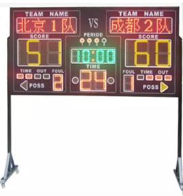 | 3 | 电子记分牌 | 外框尺寸:950*1800*75mm 产品功能:显示队名、比分、暂停次数、犯规次数、球权、节数、比赛时间、24秒、14秒显示、场地交换、声光报警提示 通信方式:默认无线通信,可选有线 供电方式:插电使用 材质:外框私模定制铝合金喷塑,PCB 面板,表层进口树脂面板 产品特点: ●专利设计铝合金外框喷塑,非塑料连接角,外框轻盈防水,长久耐用,超薄美观 ●ø5超高亮直插LED,数字电路灯板显示,带广角散光,可视性好,远距离更清晰 ●进口树脂面板作丝印处理,色泽经久不衰,防反射,抗摔打,持久耐用,功能显示直观醒目 ●采用2.4G高频无线通信,信号稳定,可控距离可达300米 ●无线通信频率可设定 ●带断电保护功能 | 1 | 套 | ![]() |