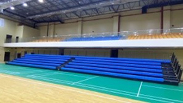 | 4 | 移动看台 | 1、活动看台床架结构:力学支撑系统安全可靠, 承重横梁一体成型,平均分散到看台负载,整个结构形成稳固的框架系统。 2、侧护栏和后防护栏与床架结构,具有安全可靠的有效连接。活动看台侧面伸缩型安全硬栏杆,内格栅:垂直栏杆设计,杆件间的净距不大于0.11m,表面喷塑,固定在看台主架上,在活动看台在伸缩过程中无须插拔。 3、踏板:经过阻燃处理的耐水结构胶合板,厚度为18mm,易于清洁。板于板之间采用双排铆钉铆接,之间接缝无高低差和外露。 4、看台伸缩:看台装有电源控制箱,本系统具备红外线遥控及按键手控两项功能,由手控按钮、红外线外射器(无线遥控用),电气控制原件均为国内知名品牌的产品。看台设有行程限位系统,看台伸展、收缩到位自行停止。采用优质减速机,单台电机功率:0.75KW、电机电压 380v、速比:1:125。驱动走轮选用直径φ190mm聚氨酯驱动轮,具有驱动力大,不损坏地面等特点。 5、活动看台:活动看台层宽700mm,层高310mm;座椅安装中心距480mm;座椅采用高密度聚乙烯(HDPE)中空低靠凳,中空吹塑工艺一次成型,不带扶手,前置式安装; 6、踏步台阶:宽900mm,箱式结构,面板为18mm厚耐水胶合板,周边为铝合金包边; 7、抗老化性能:依据GB/T16422.2-1999,GB/T250-2008氙灯抗老化外观评测,测试达到1000小时,外观颜色变色评级好于3-4级。 8、紧固件:所有紧固件都按照设计要求(强度级别)采购优质物料,而且采用扭力扳手紧固到位。从而保证活动看台的整体性,稳定性。 9、表面处理:所有钢制件经除油除锈处理后再进行喷涂作业,涂层厚度70-140um,铅笔硬度达3H+,试品经GB1771-91,36小时盐雾实验,涂膜无变化,划格处单面腐蚀<2mm,产品具有耐酸碱、耐湿热、抗老化、外观美观等优点,能适合潮湿和酸雨环境,且产品涂料配方不含有有毒元素,避免损害使用者的健康。 10、条凳式看台座椅190座,踏步9件,采用中空塑料长条凳座椅中心距460mm;通道900,阶高310产品规格:椅深(295mm±5mm),椅宽(455mm土5mm),座高(220mm±5mm)。 11、电动伸缩活动看台(床架、扶手栏杆、走轮) 等零部件均依据GB/T 10125-2021标准,中性盐雾3000h测试后,样品表面无生锈及腐蚀现象。供货前提供CMA/CNAS认证机构出具的检测报告复印件并加盖投标人公章; 12、电动伸缩活动看台(床架、扶手栏杆、走轮) 等零部件均依据GB/T 16422.3-2022标准,UV紫外老化4000h,样品无明显变色、无开裂、脱落、气泡等现象。供货前提供CMA/CNAS认证机构出具的检测报告复印件并加盖投标人公章; | 190 | 座 | ![]() |
