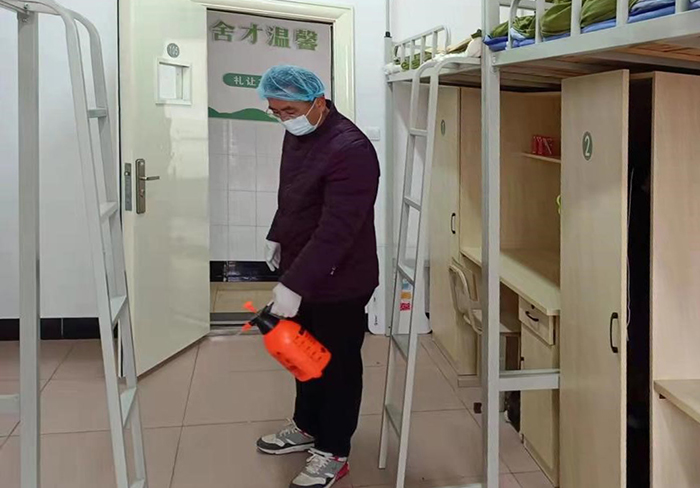 面对特如其来的新冠疫情,为做好宿舍安全卫生工作,他制定了值班员值日流程和宿舍疫情防控预案,多次开展疫情防控演练和安全逃生演练,指导值班员开展学生的一日两次测温和消毒等工作。在宿舍内办宣传栏,张贴安全海报,以及日常与学生的沟通中不忘安全教育,让安全意识进入学生头脑,防患于未然。