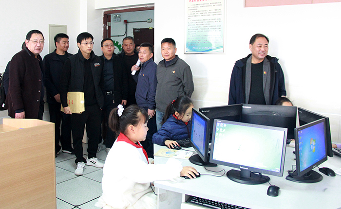 专家和申报学校负责人察看实验小学育才路校区的孩子们上信息课