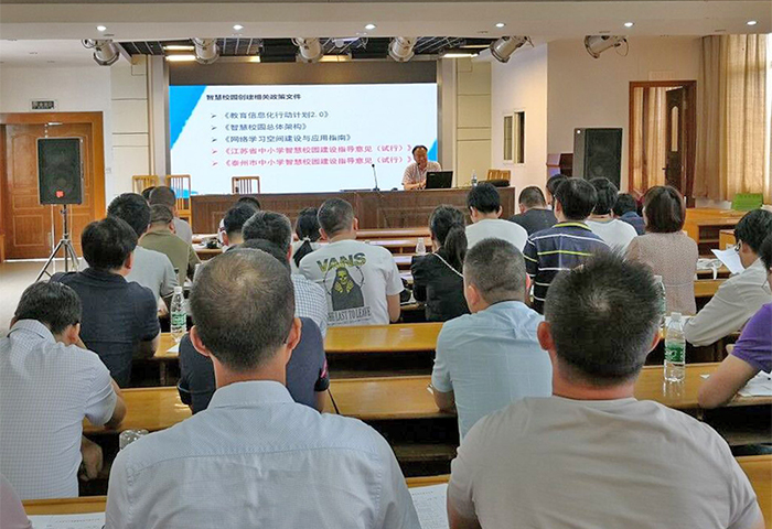 8月28日下午,海陵区召开智慧校园创建推进会,区属中小学分管校长、智慧校园创建工作负责人参会培训。省智慧校园创建评估专家、市智慧校园创建指标细则编制组成员沈湜应邀向推进会做指标细则解读。
