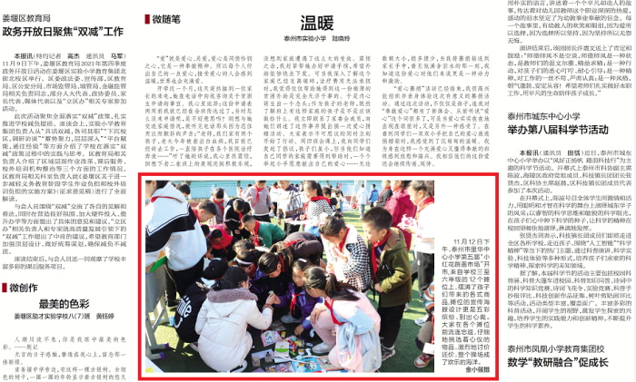 《泰州日报》里华小学第五届“小红花”跳蚤市场开市 来源:《泰州日报》 作者:金小强 发布时间:2021-11-19 浏览次数: 次 【字体:小 大】 11月12日下午,泰州市里华中心小学第五届“小红花跳蚤市场”开市,来自学校三至六年级的12个摊位上,摆满了孩子们带来的各式商品,摊位的宣传海报设计更是五彩缤纷、别出心裁。大家在各个摊位前流连忘返,仔细地挑选着心仪的物品,激烈地讨价还价,整个操场成了欢乐的海洋。 本文2021年11月19日刊载于《泰州日报》 分享到: 【打印正文】