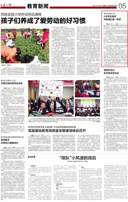 《泰州日报》泰州市实验小学4名学生喜获市朗诵比赛一等奖