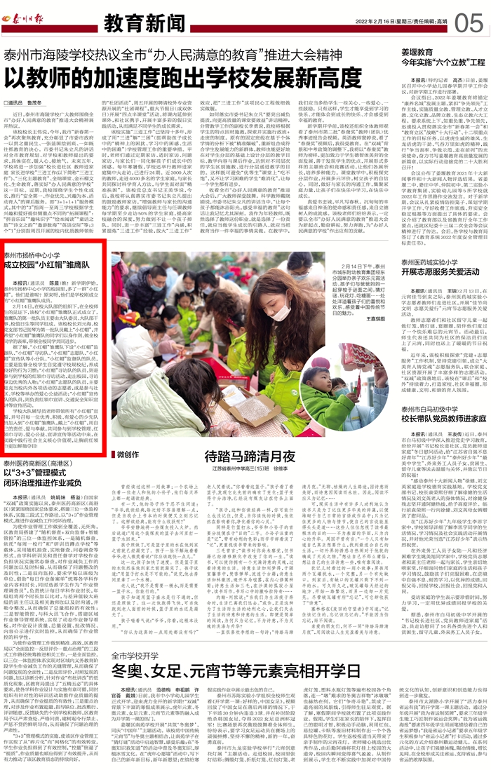 此篇通讯刊登于2022年2月16日《泰州日报》教育新闻版