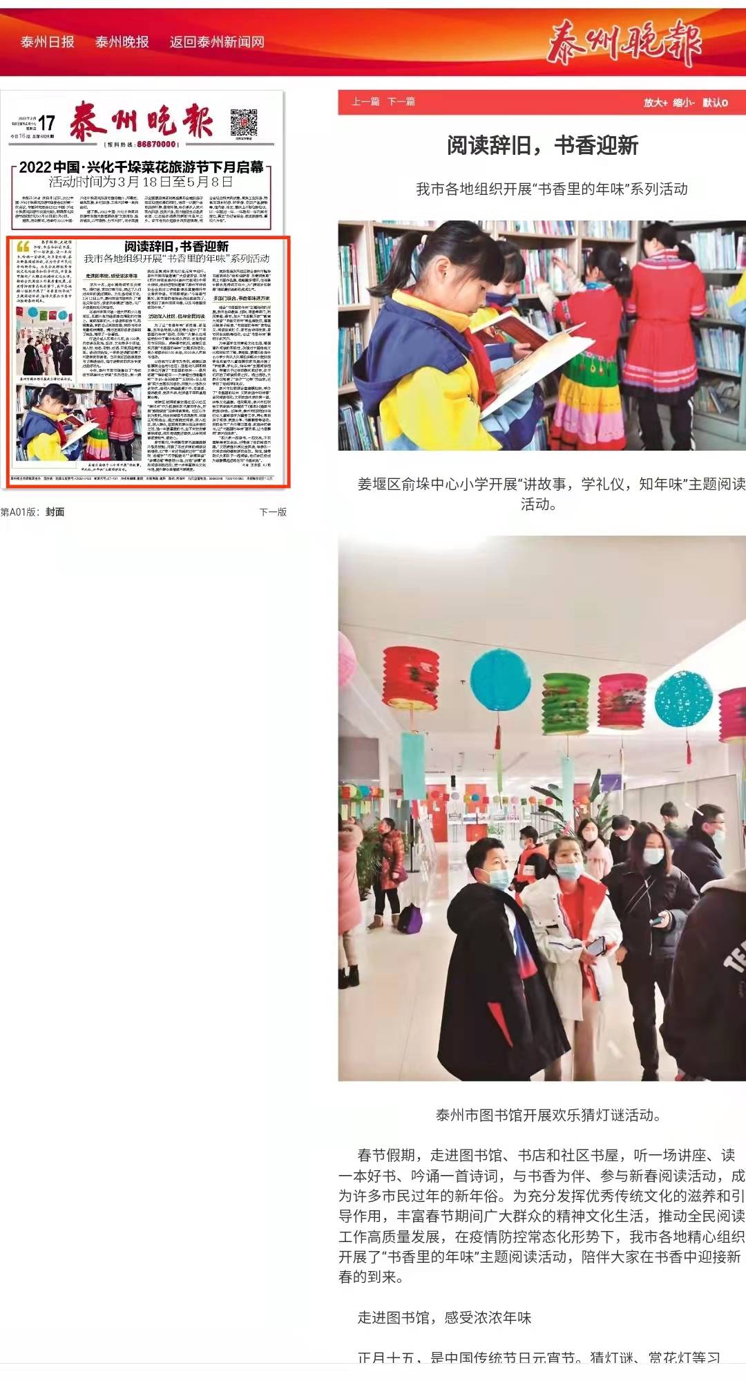 《泰州晚报》阅读辞旧,书香迎新 我市各地组织开展“书香里的年味”系列活动