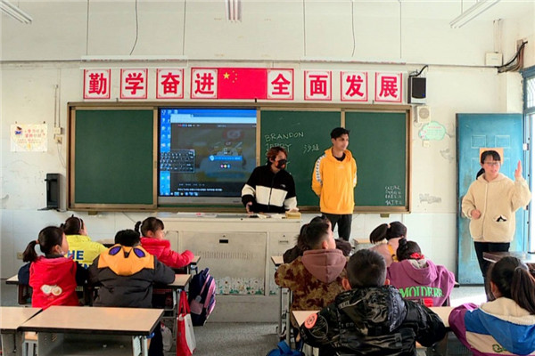 上午,在海陵区苏陈实验小学,来自江苏牧院的12名外国留学生分成五组,带领孩子们玩游戏、唱英文歌、跳舞等。这里的孩子是第一次与外国人面对面交流,也是第一次上外教课,显得非常兴奋,积极参与互动,课堂上洋溢着欢乐的气氛。
