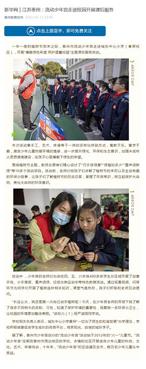 《泰州教育发布》新华网 | 江苏泰州:流动少年宫走进校园开展课后服务