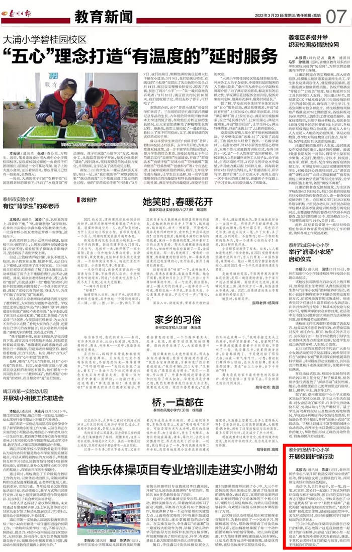 此篇通讯刊登于2022年3月23日《泰州日报》教育新闻版