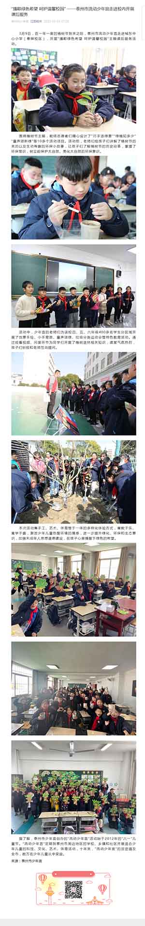 《江苏校外》“播散绿色希望 呵护温馨校园” ——泰州市流动少年宫走进校内开展课后服务