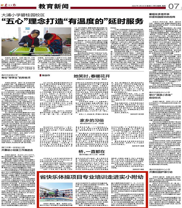 本文刊登于2022年3月23日《泰州晚报》第A07版:教育新闻