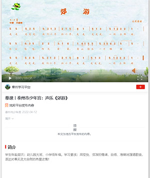 《学习强国》泰州学习平台:慕课丨泰州市少年宫:声乐《郊游》