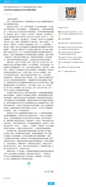 近日,泰州市海陵学校广大教师围绕全市“办好人民满意的教育”推进大会精神展开热议。