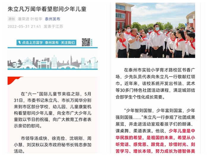《泰州发布》朱立凡万闻华看望慰问少年儿童
