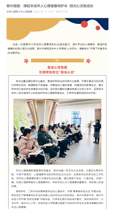 《全国儿童青少年心理健康》|泰州海陵:撑起未成年人心理健康保护伞 阳光心灵助成长