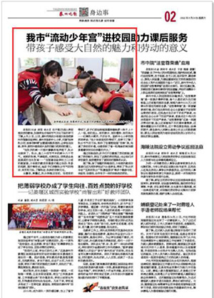 《泰州晚报》我市“流动少年宫”进校园助力课后服务 带孩子感受大自然的魅力和劳动的意义