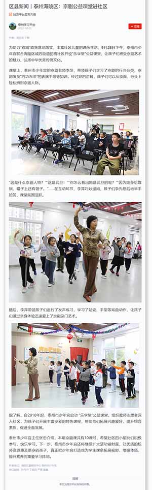 《学习强国》区县新闻丨泰州海陵区:京剧公益课堂进社区