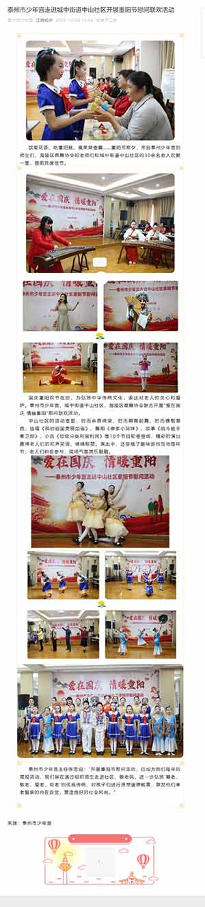 《江苏校外》泰州市少年宫走进城中街道中山社区开展重阳节慰问联欢活动