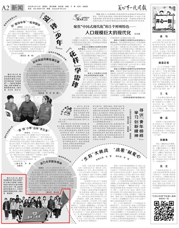 《关心下一代周报》“追‘锋’少年” “花样”学雷锋 来源:《关心下一代周报》 作者:周艳群 发布时间:2023-03-23 浏览次数: 次 【字体:小 大】 《关心下一代周报》“追‘锋’少年” “花样”学雷锋 图为3月2日,泰州市海陵学校“四点半课堂”的“红领巾志愿者”与城中街道方洲社区红蓝乐助服务队队员们一起,走进海阳养老服务中心,开展学雷锋志愿服务活动。 (通讯员 周艳群) http://epaper.ycw.com.cn/Page/index/pageid/1344949.html 分享到: 【打印正文】 相关内容