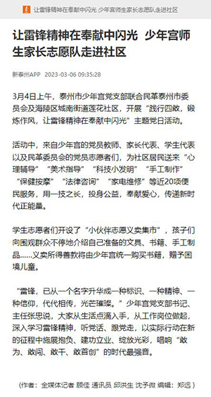 《新泰州》APP 让雷锋精神在奉献中闪光 少年宫师生家长志愿队走进社区