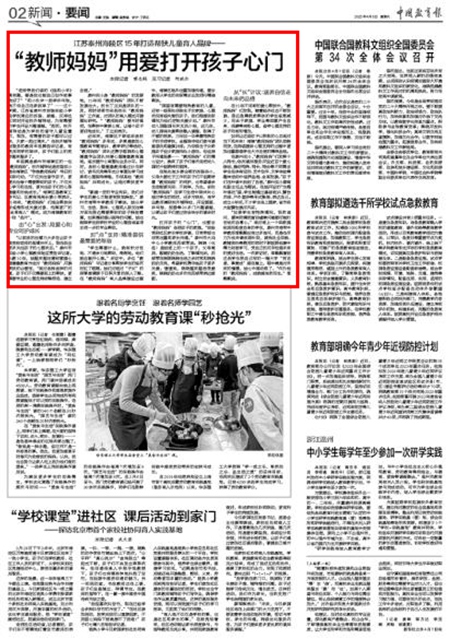 《中国教育报》江苏泰州海陵区15年打造帮扶儿童育人品牌——“教师妈妈”用爱打开孩子心门