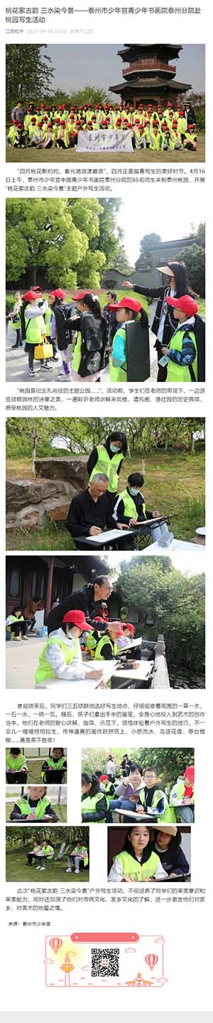 《江苏校外》桃花萦古韵 三水染今景——泰州市少年宫青少年书画院泰州分院赴桃园写生活动