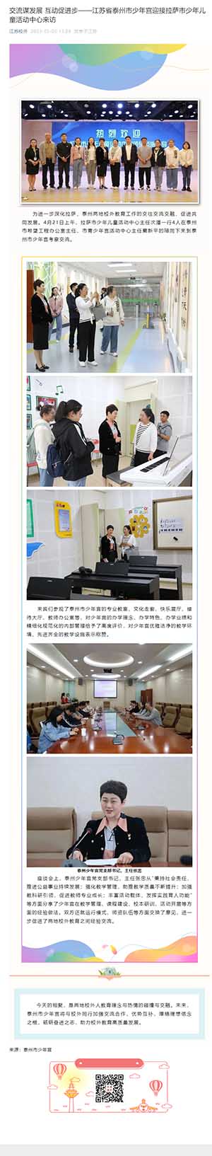 《江苏校外》交流谋发展 互动促进步——江苏省泰州市少年宫迎接拉萨市少年儿童活动中心来访