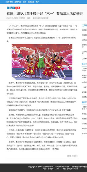 《新华网》泰州:城乡儿童手拉手迎“六一”专场演出活动举行