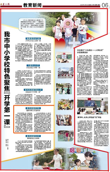 《泰州日报》我市中小学校特色聚焦“开学第一课”