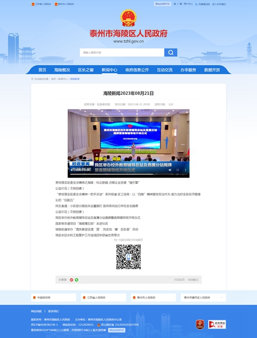 《海陵新闻》我区举办校外教育辅导总站及直属分站揭牌暨首期辅导班开班仪式 来源:海陵学校 作者:海陵学校 发布时间:2023-10-08 浏览次数: 次 【字体:小 大】 我区举办校外教育辅导总站及直属分站揭牌暨首期辅导班开班仪式(10:40-11:53) http://www.tzhl.gov.cn/xwzx/spxw/art/2023/art_7a30c9d14da0430ab280a030e6c83711.html 分享到: 【打印正文】 相关内容