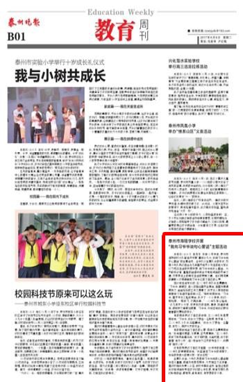 《泰州晚报》泰州市海陵学校开展“我向习爷爷说句心里话”主题活动