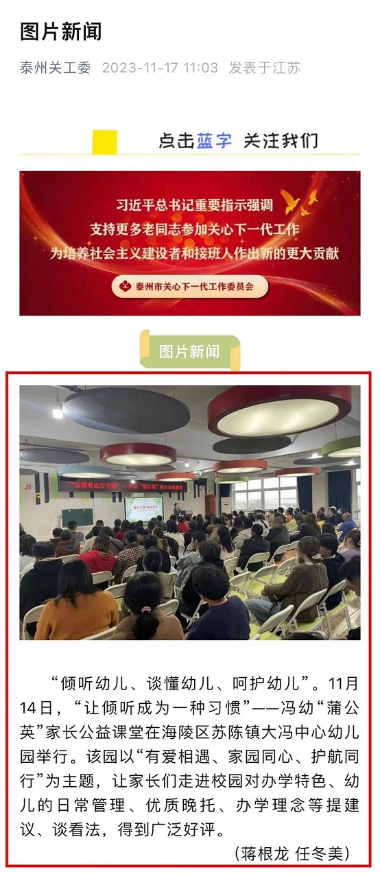 此新闻刊登于泰州工关委新闻图片2023年11月17日。