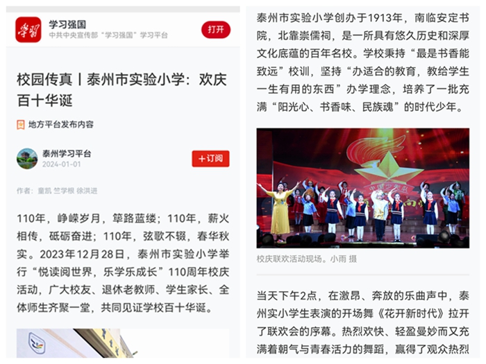 《学习强国》校园传真丨泰州市实验小学:欢庆百十华诞
