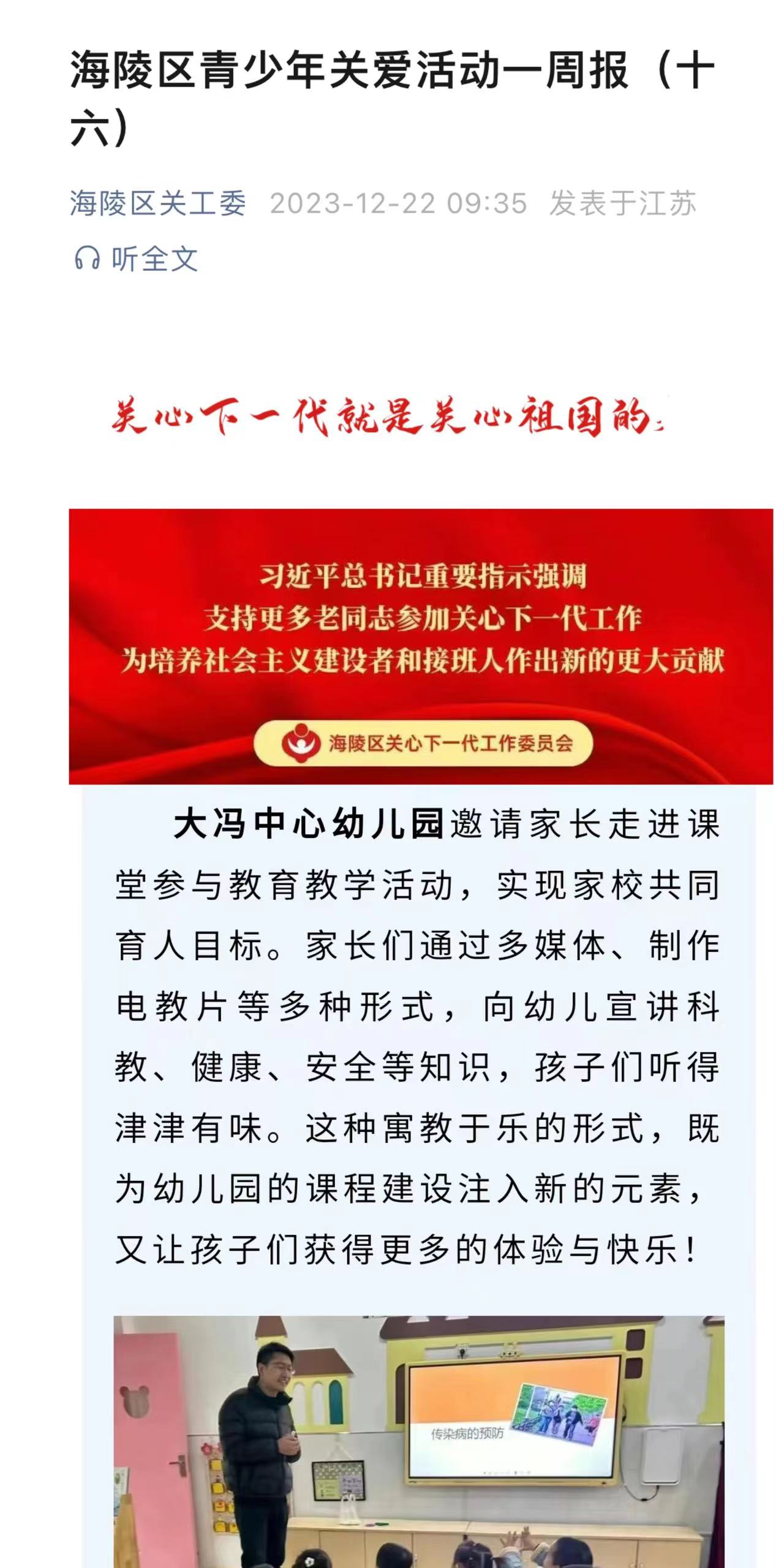 海陵区关工委|海陵区青少年关爱活动一周报(十六) 来源: 作者: 发布时间:2024-01-11 浏览次数: 次 【字体:小 大】 此新闻刊登于《海陵区关工委》2023年12月22日。 分享到: 【打印正文】