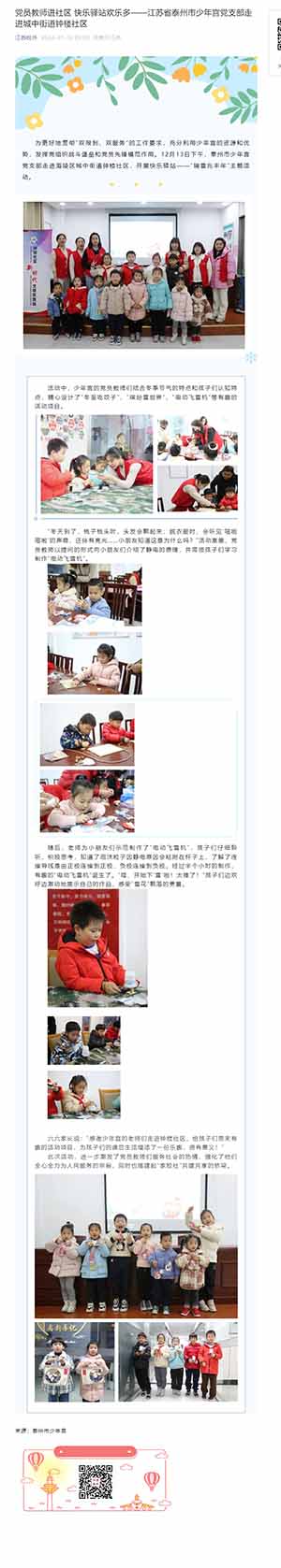 《江苏校外》党员教师进社区 快乐驿站欢乐多——江苏省泰州市少年宫党支部走进城中街道钟楼社区