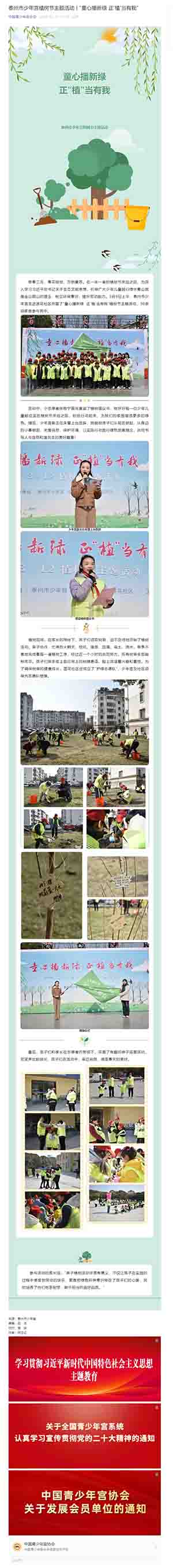 《中国青少年宫协会》泰州市少年宫植树节主题活动丨“童心播新绿 正‘植’当有我”